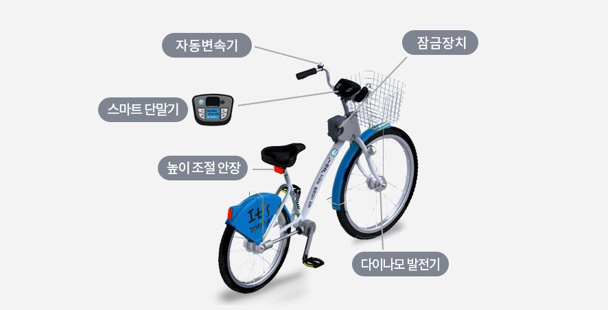 2가지가 있습니다. 하나는 키오스크를, 다른 하나는 스마트폰 어플리케이션을 이용하는 방법입니다. 키오스크는 자전거를 빌릴 때 사용하는 무인대여 기계로, 이용방법, 카드 등록, 자전거 대여 등 다양한 서비스를 이용할 수 있습니다. 스마트폰 어플리케이션에서도 똑같은 서비스 기능이 탑재되어 있습니다.