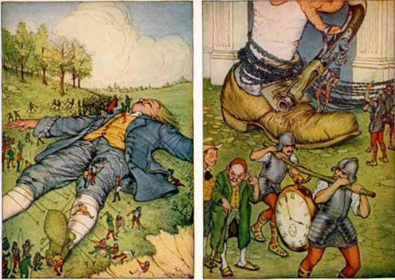 애초에 걸리버 여행기는 잉글랜드의 고위층을 한심하게 표현한 풍자소설이다. 이는 라퓨타의 뜻이 스페인어로 창녀(La Puta)라는 것에서부터 드러난다. 천공의 성 라퓨타는 위의 소설에서 영감을 받아 만들어진 영화다. 극 중 라퓨타는 과거에 성경에서 나온 소돔과 고모라를 멸망시킨 하늘의 불, 인도의 라마야마에서는 인드라의 화살이라고 불리며 하늘에서 세계 전체를 지배하면서 불복종하는 모든 것을 파괴한 부유도로 나온다.
